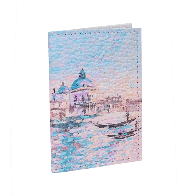 - Обложка для 2-х карточек с принтом «Голубая Венеция», натуральная кожа,