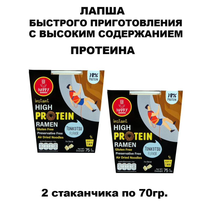 Лапша рамен "Тонкоцу" с высоким содержанием протеина, 2упак по 70гр., Happy Noodles