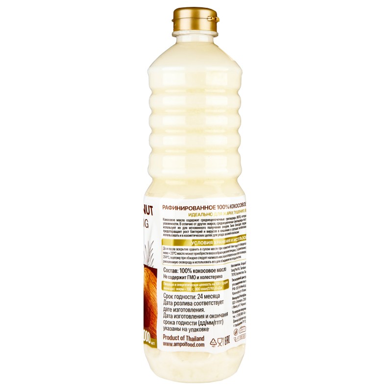 Рафинированное 100% кокосовое масло ROI THAI, 1000 мл
