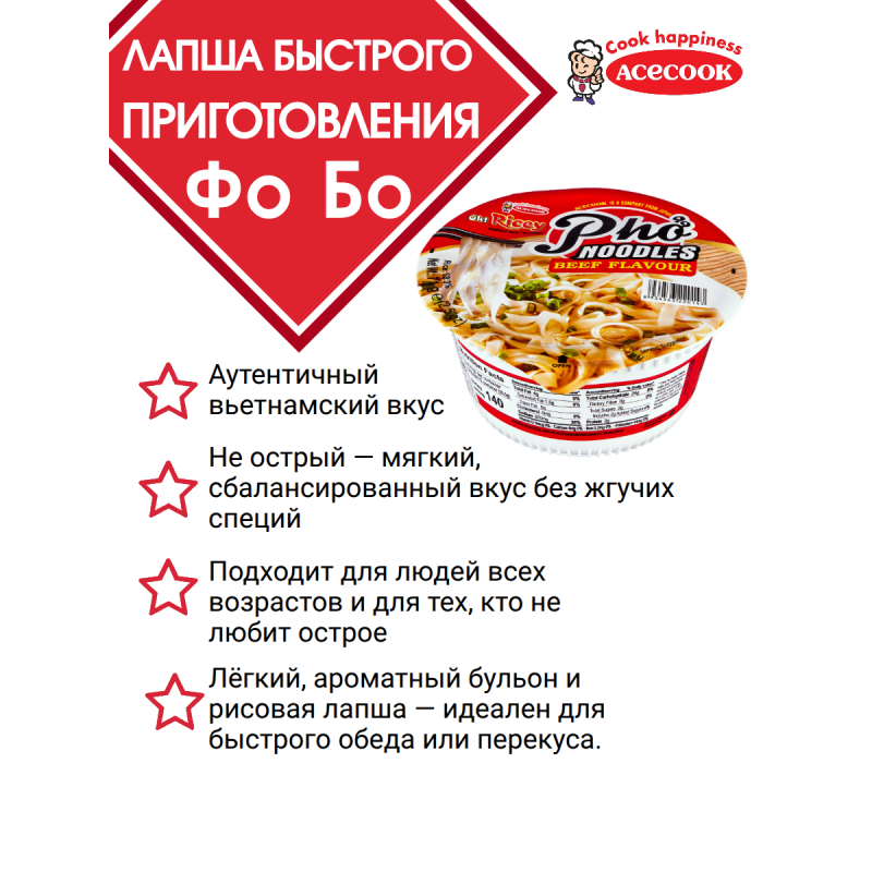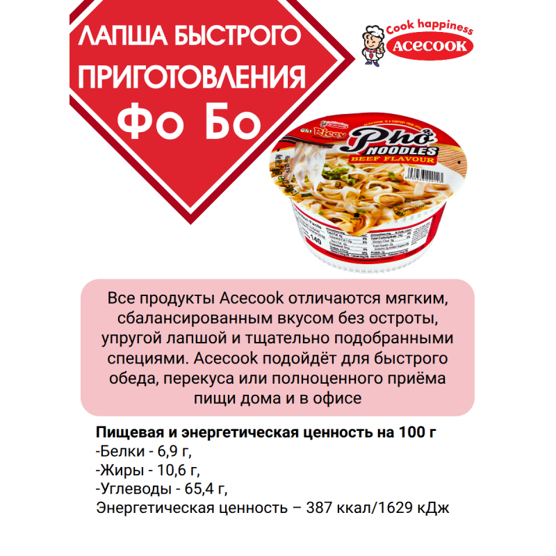 Быстро, вкусно и сытно! Почувствуйте настоящий восточный вкус с лапшой быстрого приготовления "Фо Бо" от Acecook.