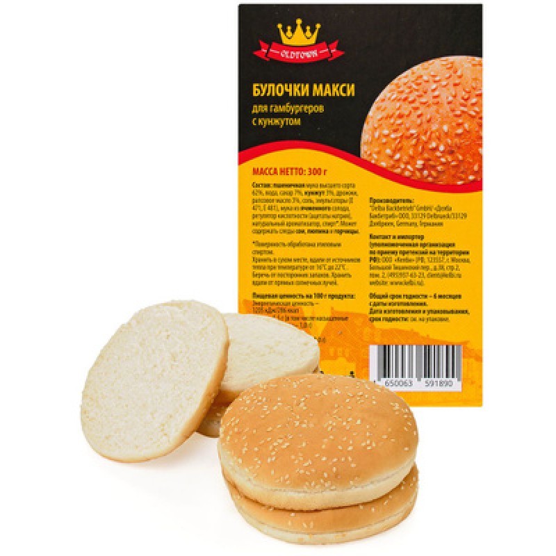 Булочки для гамбургеров с кунжутом Макси, комплект 2уп по 300 гр., (8 булочек), OldTown