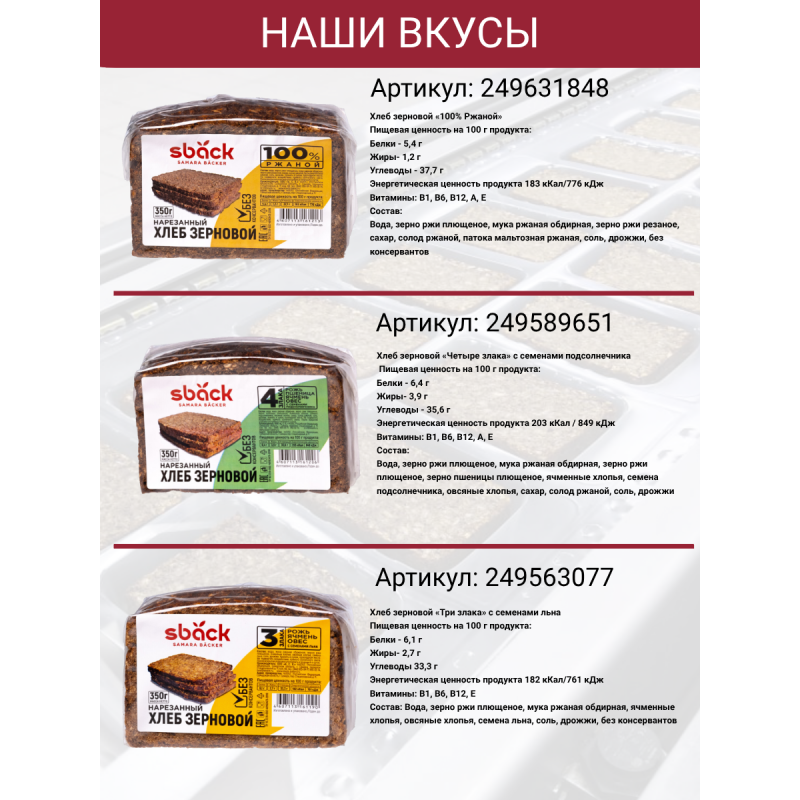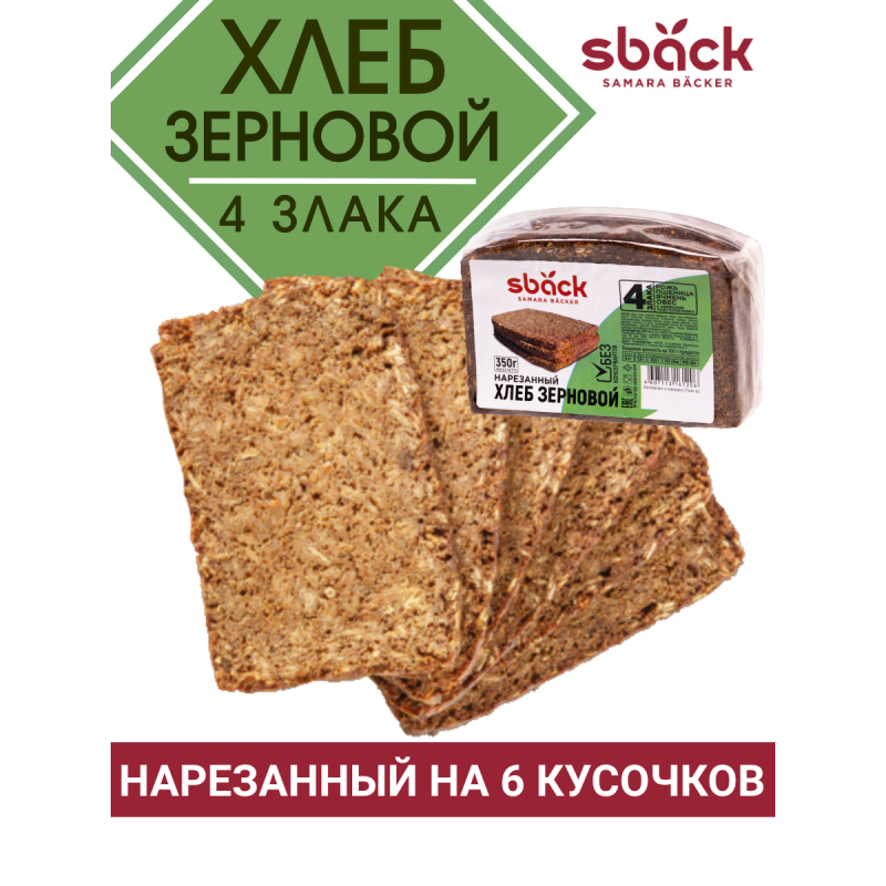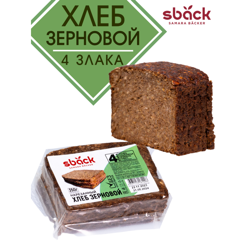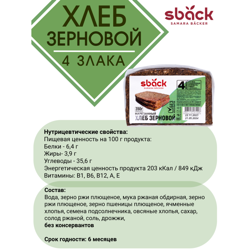 Хлеб зерновой "4 злака" с семенами подсолнуха, 350 гр., Sback