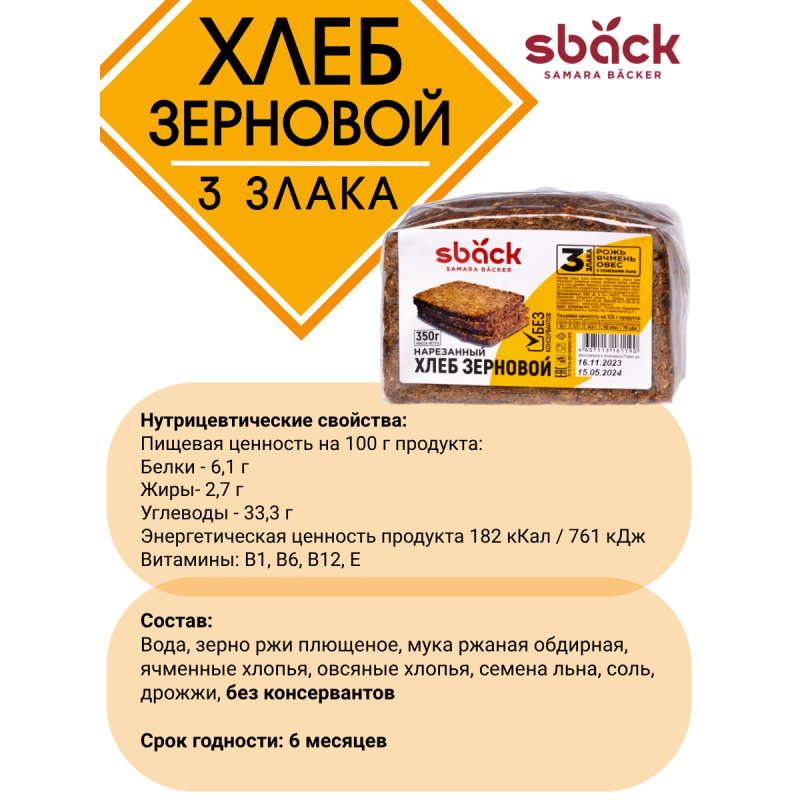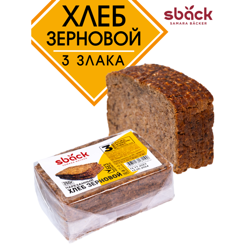 Хлеб зерновой "Три злака" с льняным семенем, 350 гр., Sback