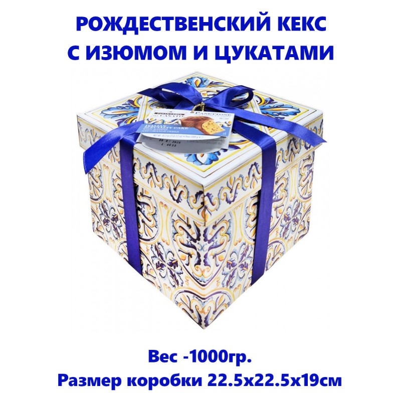 Кекс панеттоне с изюмом и цукатами, в великолепной коробке с бантом, 1кг, Pasticceria Del Casato