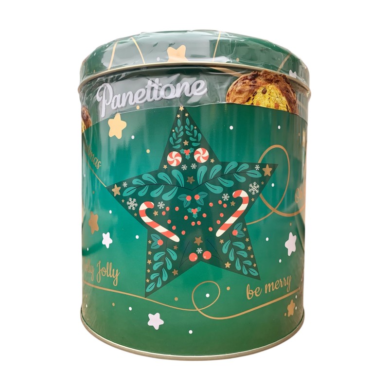 Кекс панеттоне "Веселого Рождества", с изюмом и цукатами, в зеленой жестяной коробке,1кг, Battistero