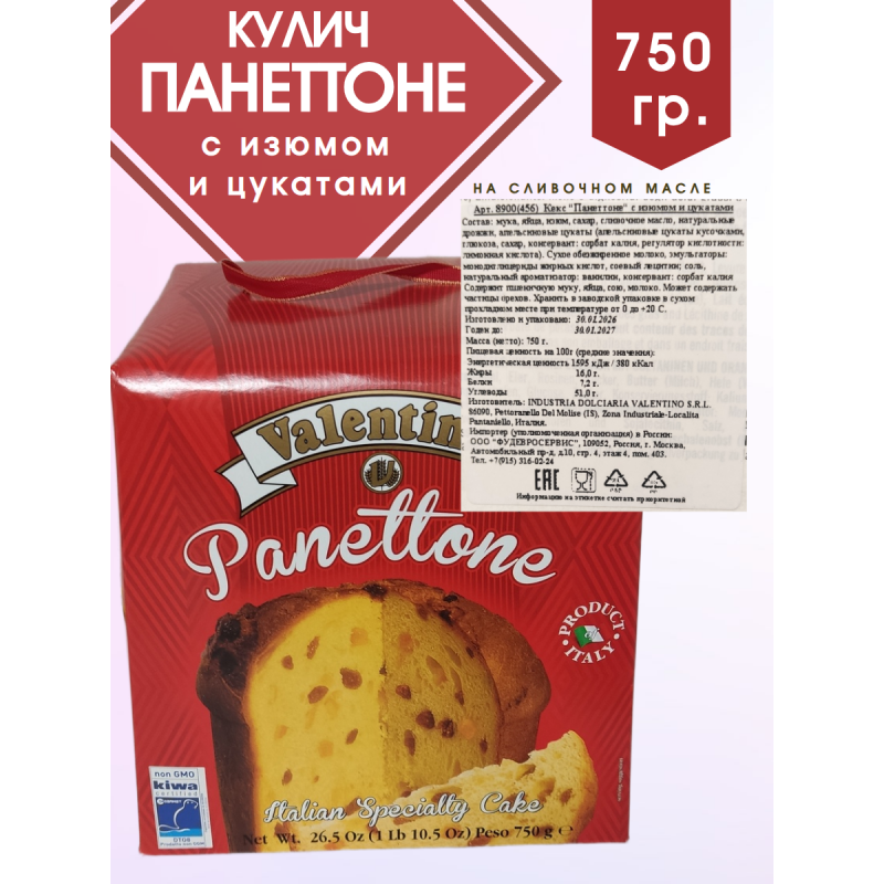 Теги: Кулич, Панеттоне, изюм, цукаты, Valentino, 750гр, рождество, праздничный торт, новогодний торт, десерт, выпечка, кондитерское изделие, купить кулич, купить панеттоне