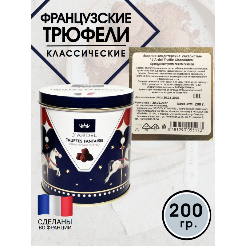 Трюфели французские классические, в жестяной банке, 200гр., J′Ardel