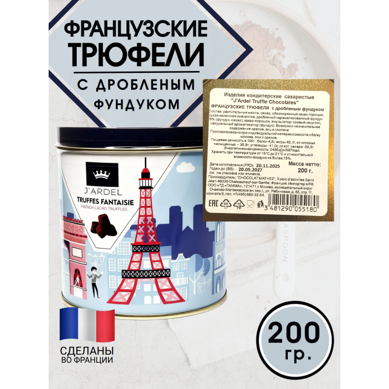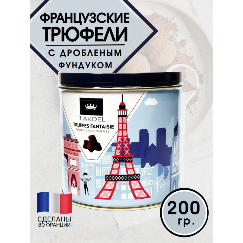 Трюфели французские с фундуком, в жестяной банке, 200гр., J′Ardel