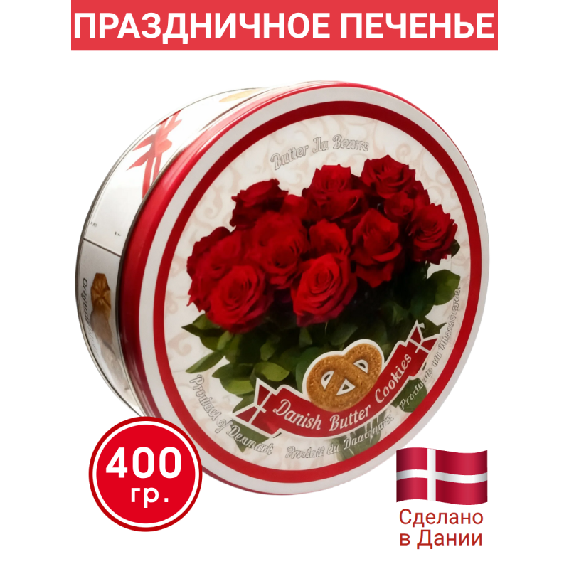 Датское сдобное печенье "Букет для любимой", в жестяной банке, 400гр., Bisquini