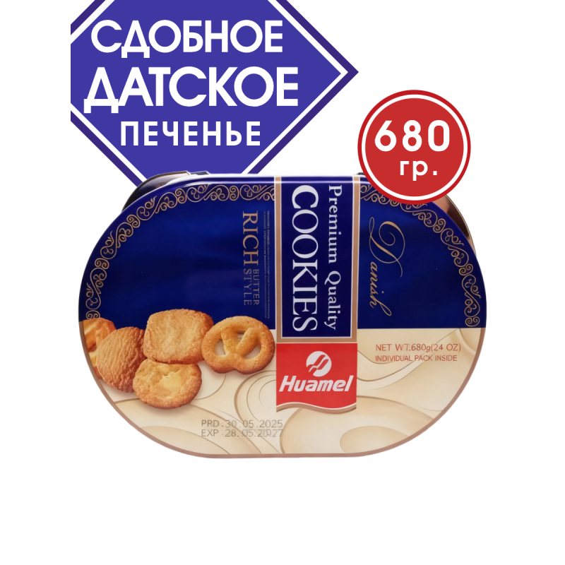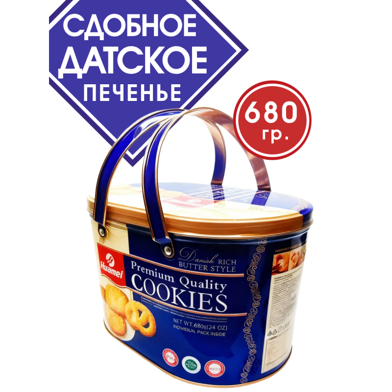 Датское печенье Premium Cookies в жестяной банке, 680гр., Huamel