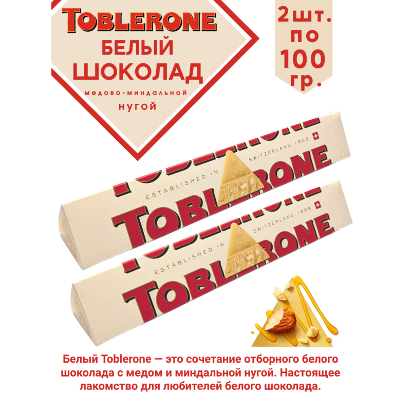 Шоколад белый TOBLERONE с медово-миндальной нугой, 2шт по 100 гр.