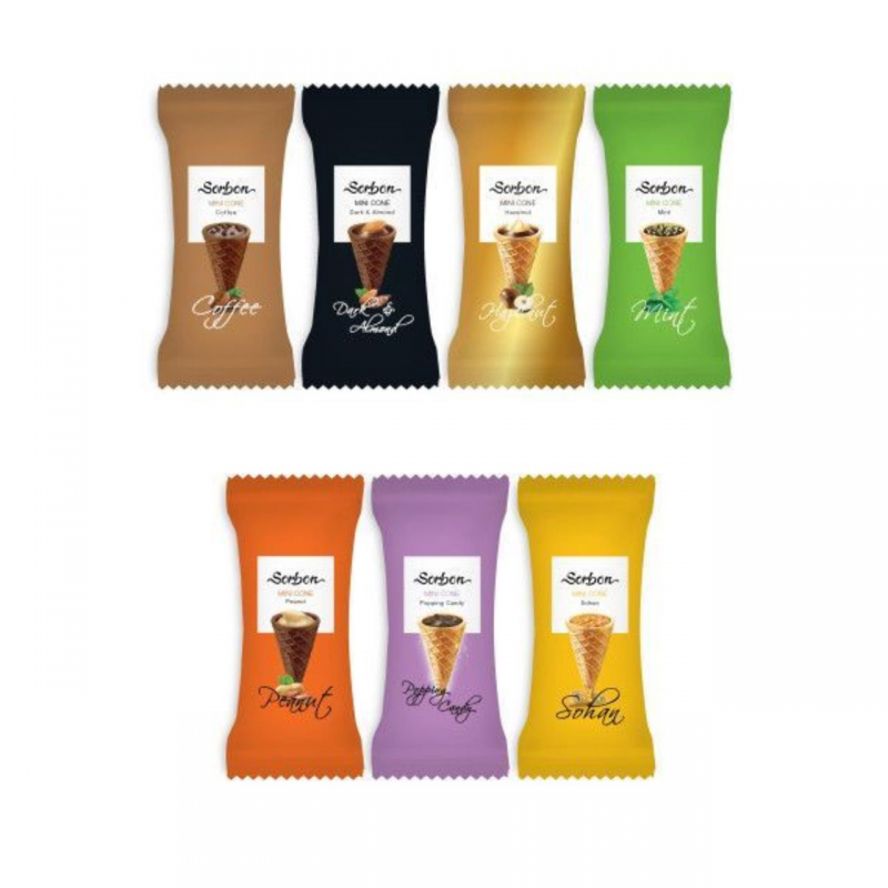 Конфеты вафельные мини-рожки, ассорти, 5 видов с разными начинками, 200 гр., Sorbon