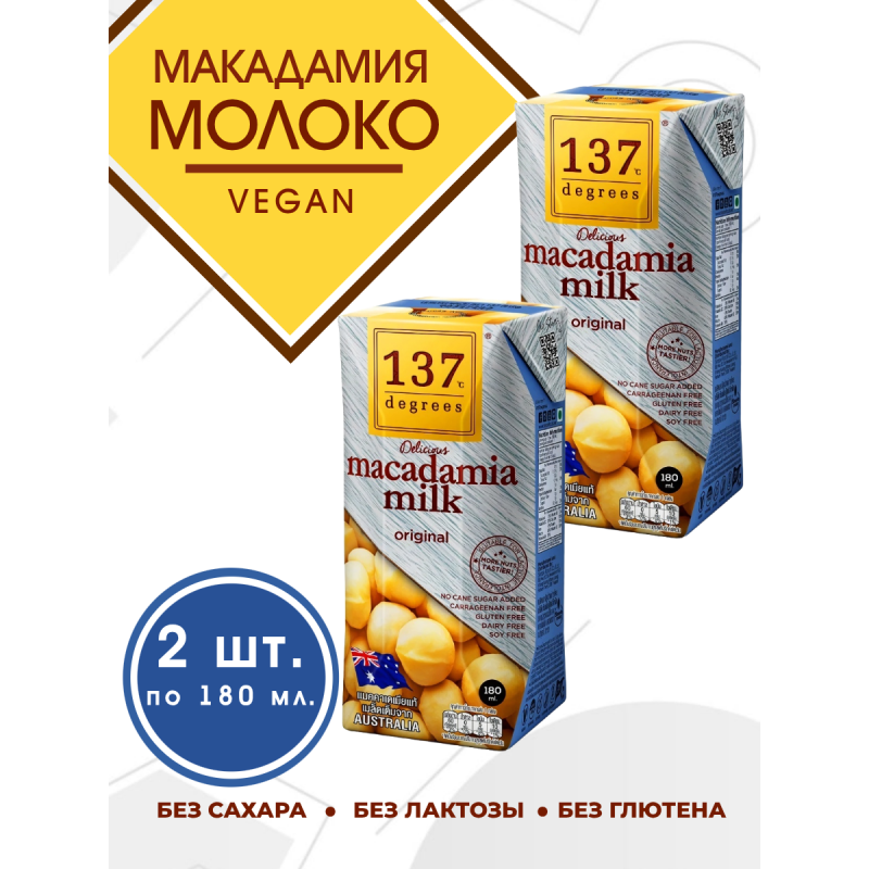 Натуральное молоко из макадамии 137 Degrees, без сахара, 2 упаковки по 180 мл.