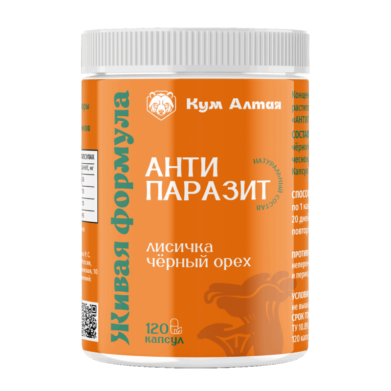 Капсулы "АНТИПАРАЗИТ", лисичка+черный орех, 120 капсул по 500мг, КумАлтая