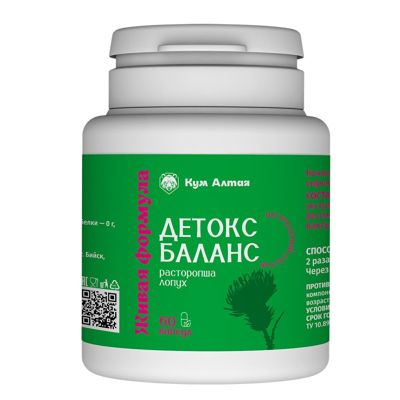 Капсулы "ДЕТОКС&БАЛАНС", расторопша+лопух, 60 капсул по 500мг, КумАлтая